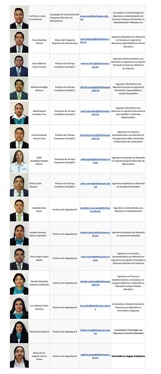 • El aspirante al área de Mecatrónica deberá contar con conocimientos básicos en el área de ciencias exactas, redacción de textos, habilidades de análisis y autoaprendizaje; aptitudes y actitudes para comunicarse en un idioma extranjero, uso adecuado de los medios de comunicación e información, trabajo individual y en equipo. Demostrar interés por aplicar nuevas tecnologías y por los métodos de investigación. Búsqueda de la superación y mejora personal a partir de sus propias fortalezas y debilidades. Participación continúa para su transformación profesional.
